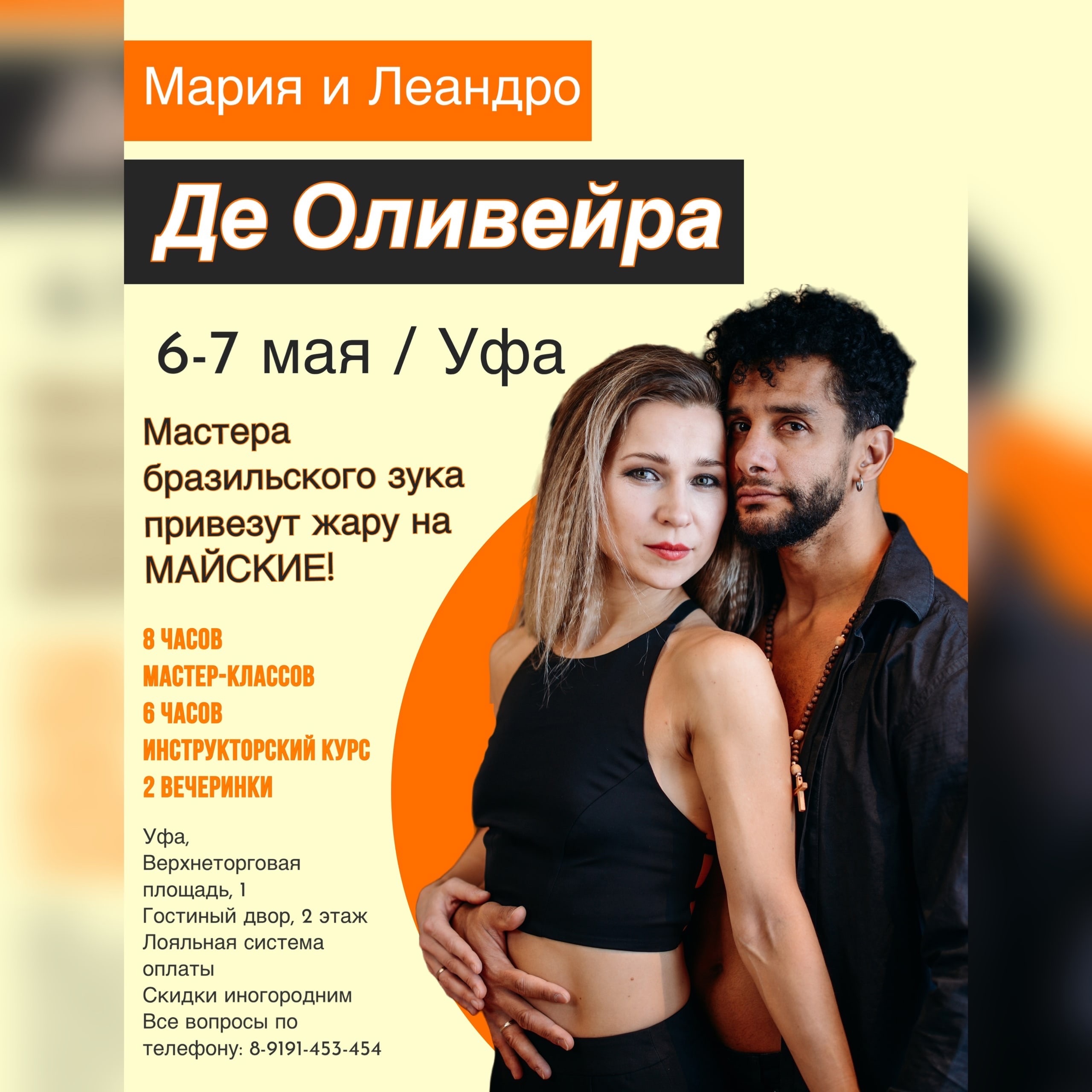 6-7 мая Вы познаете тонкости танцевания и преподавания вместе с Леандро Де Оливейра и Марией Де Оливейра, одних из лучших