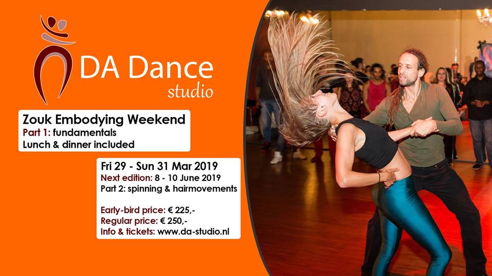 For those who completed the embodying weekend part 1. The embodying weekend is a trainingsweekend for people who would like to deepen and broaden their dance knowledge and dance skills in zouk. Each weekend comprises 30+ hours of dance lessons. The curriculum of this weekend is a continuation of the embodying weekend part 1. As you are used to in part 1, you will get various classes and personal attention by one of the teacher to support your personal development in dance. This time we will work on more complex dance material and on the details of your dancing. We will work on hairmovements, spinning, creativity and musicality.
